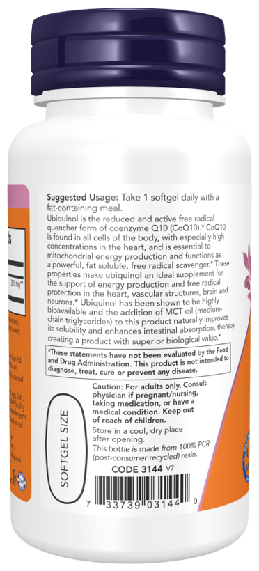 NOW Убихинол 200 мг, 60 капсул