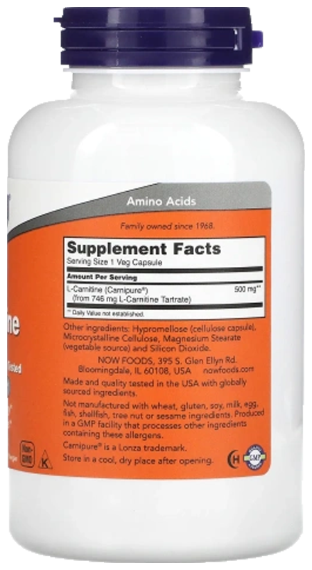 NOW L-Carnitine 500 mg, 180 капсул