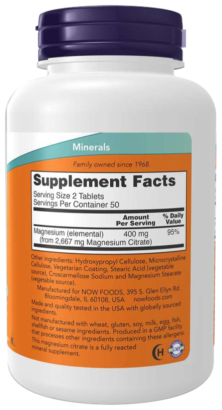 NOW Magnesium Citrate 200 mg, 100 таблеток