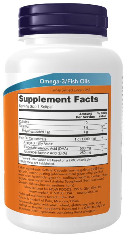 Этот концентрат рыбьего жира производится в соответствии со строгими стандартами контроля качества. Он проверен на отсутствие потенциально опасных концентраций загрязняющих веществ, например, полихлордифенилов, диоксинов, ртути и других тяжелых металлов. Если прием рыбьего жира вызывает тошноту или отрыжку, эти желатиновые капсулы без запаха, покрытые кишечнорастворимой оболочкой, помогут легче перенести прием рыбьего жира.